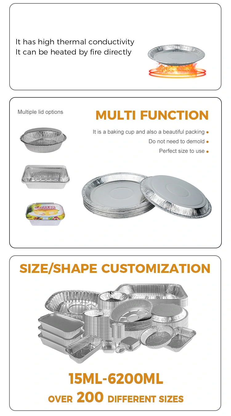 Алюминиевая фольга Yunchu предлагает 10 -дюймовые контейнеры из алюминиевой фольги из 10 дюймов. Продукт имеет верхний диаметр 258 мм (около 10,1 дюйма), нижний диаметр 203 мм (около 7,9 дюйма) и высота 20 мм (около 0,7 дюйма). С емкостью приблизительно 695 мл (около 24,5 унций), она подходит для выпечки пиццы без прилипания, легко высвобождать от плесени и не имеет запаха. Кроме того, его повышенная конструкция края предотвращает разлив ингредиентов и увеличивает практичность. Мы также можем предоставить услуги по настройке логотипа, чтобы помочь вам углубить впечатление ваших клиентов и повысить узнаваемость вашего бренда.