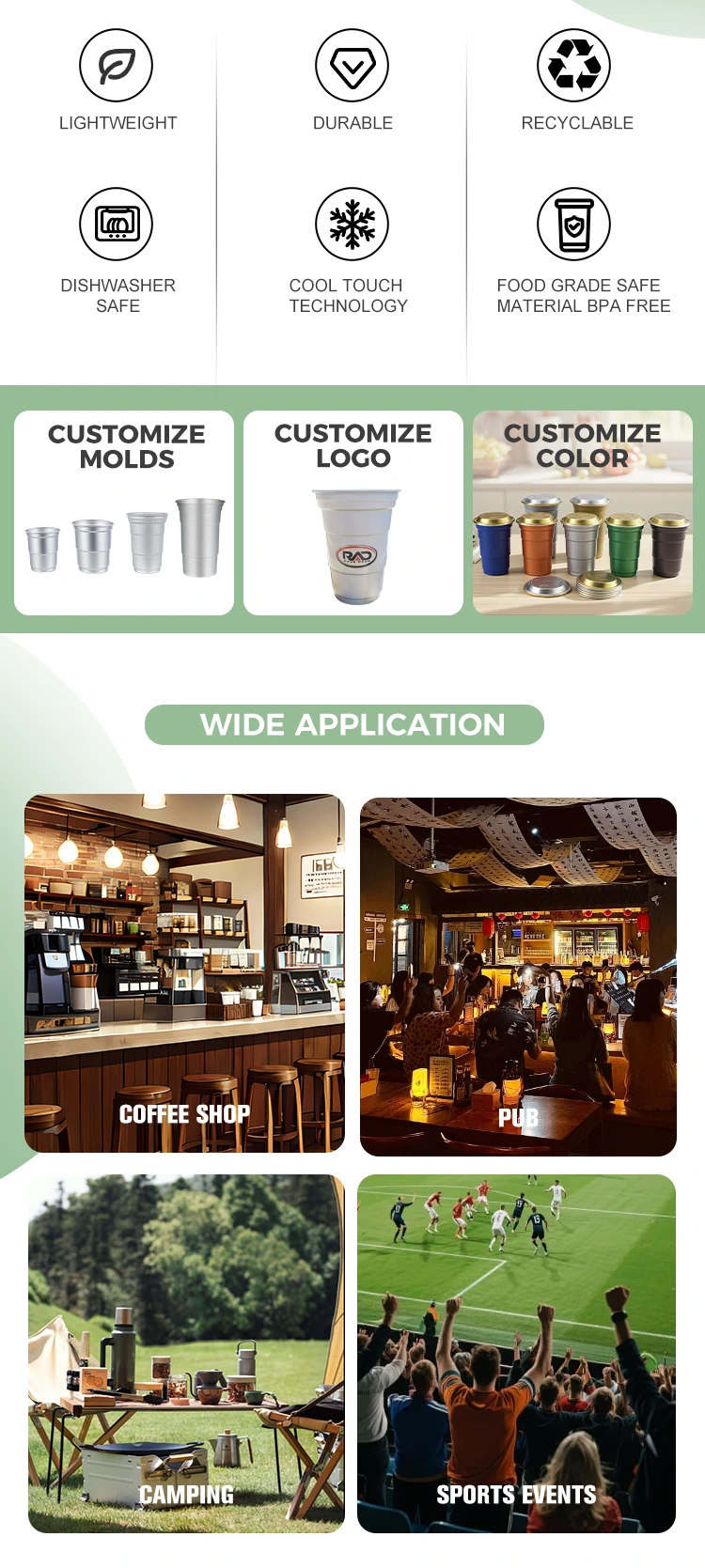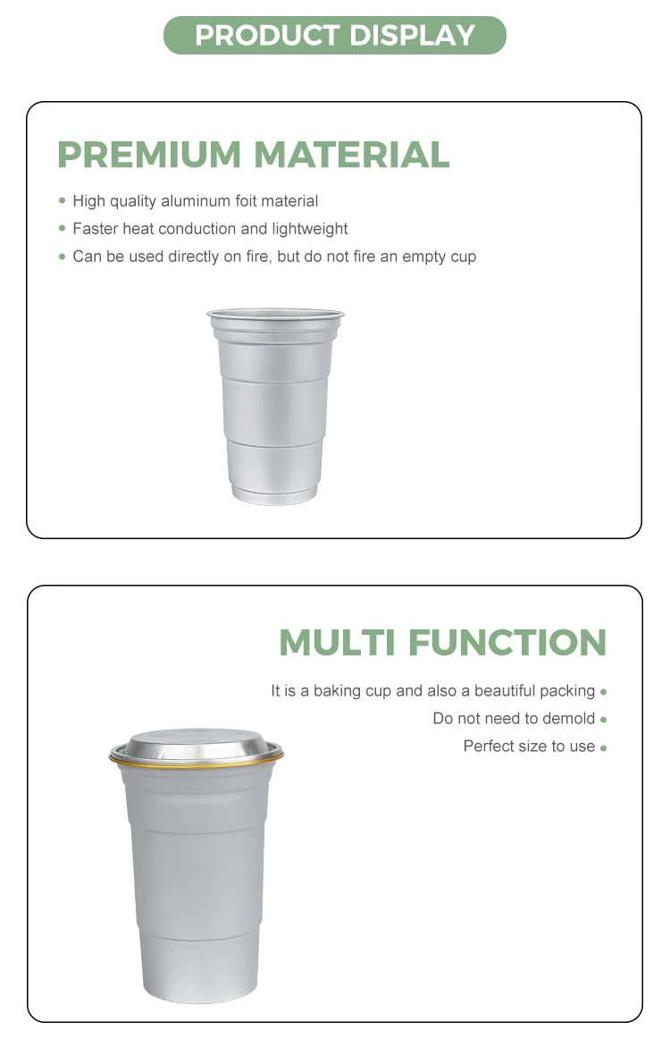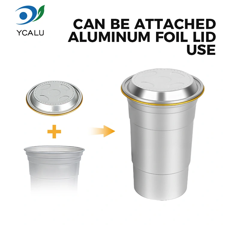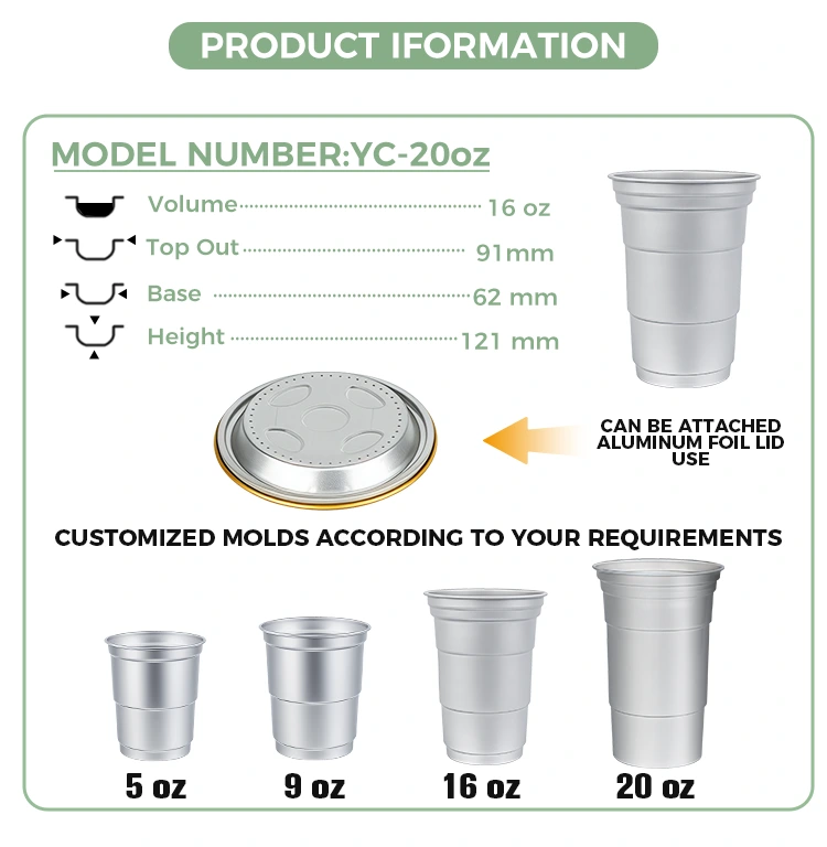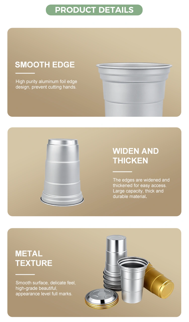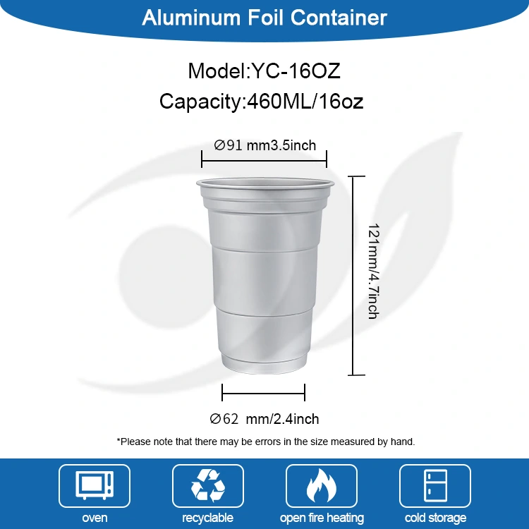 В отличие от обычных контейнеров, одноразовые стаканчики для напитков из алюминиевой фольги Yunchu емкостью 16 унций специально разработаны для предоставления упаковочных решений для брендов в конкретных сценариях. Благодаря своему компактному размеру (460 миллилитров) эта настраиваемая одноразовая чашка для напитков из алюминиевой фольги емкостью 16 унций соответствует привычкам потребления растворимых напитков на одну порцию. Эти одноразовые стаканчики для вечеринок из алюминиевой фольги на 16 унций особенно подходят для выноса, рынков или кемпинга, помимо своих практических функций. Прежде всего, это может помочь повысить ценность бренда.