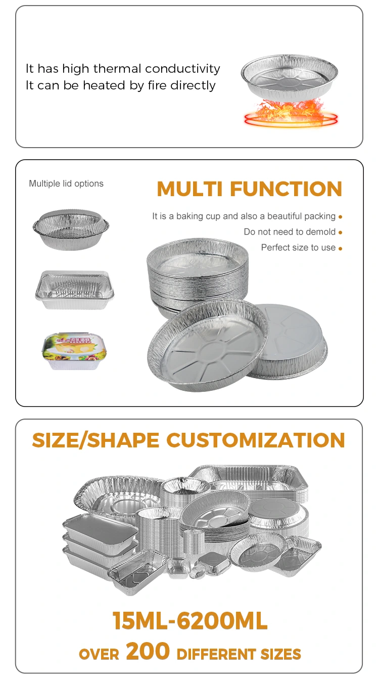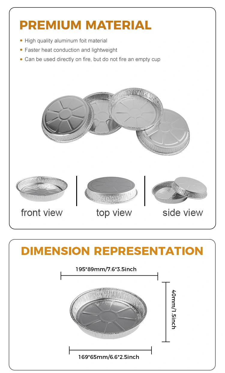 Алюминиевая фольга Yunchu предлагает 7 -дюймовую морщинистую пиццу с серебряной алюминиевой фольгой с моделью № 5067. Продукт имеет верхний диаметр 168 мм (около 6,6 дюйма), более низкий диаметр 145 мм (около 5,7 дюймов) и высота 25 мм (около 0,9 дюйма). С емкостью приблизительно 400 мл (приблизительно 14,1 унции) она идеально подходит для выпечки пиццы, не прилипая во время выпечки, легко выпустить плесень и без запаха. Кроме того, его полностью сжатый дизайн предотвращает выплетку пищи, увеличивая практичность. Мы также можем предоставить услуги по настройке логотипа, чтобы помочь вам углубить впечатление ваших клиентов и повысить видимость вашего бренда.