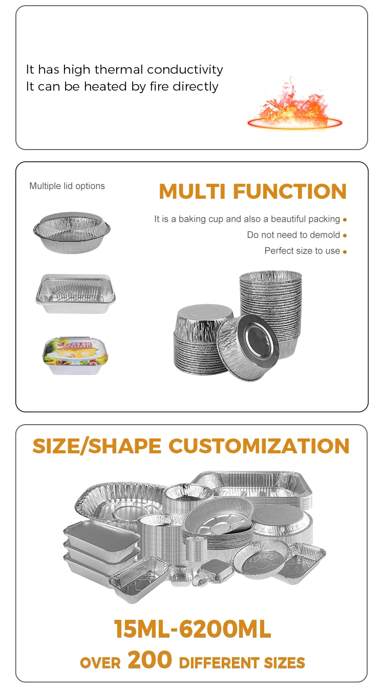 Yunchu Алюминиевая фольга Поставщик пирога для выпечки чашки серебряной алюминиевой фольги пищевой контейнер для выпечки и формирование двух в одном многоцелевом контейнере из алюминиевой фольги, выпечках, широкий диапазон использования барбекю, можно нагреть на открытое пламя, и устойчивые к выпечке, вместо того, чтобы выпечка, для выпечки. Нужно быть сложенным и формированным, причудливым использованием, одной мультицеполисной, пудингом, пирогом, пирогами, яйцами, яйцами, на пару, барбекю и т. Д., Антимины и простым в демонтаре, нелегко сжечь, гладкие внутренние могут быть высвобождены с легкой уточнением, открытым пламенным нагреванием и не сломится, это может предотвратить небольшие закуски, а шоколадные скольжения и могут усилить устойчивость к скольжению, а также устойчивости.