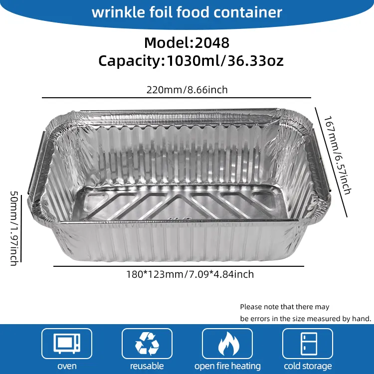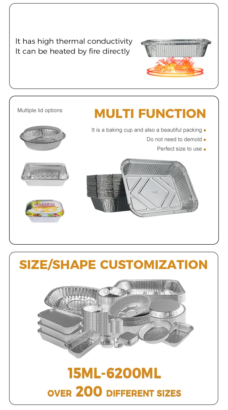Одноразовый ланч-бокс для выпечки барбекю на фабрике алюминиевой фольги Yunchu, контейнер из серебряной алюминиевой фольги, изготовлен из пищевой алюминиевой фольги высокой чистоты. Он нетоксичен и безвкусен, устойчив к высоким и низким температурам. Температура плавления достигает 250°C. Он может находиться в прямом контакте с пищей. Не выделяет вредных веществ при нагревании при высоких температурах. Он также может сохранять стабильную форму при охлаждении и замораживании. Это одноразовая конструкция, которую после использования можно выбросить. Не нужно тратить время на чистку тарелок и противней, полную детоксикацию. Он решает утомительную проблему уборки после еды и особенно подходит для таких сцен, как собрания большого количества людей и путешествия на свежем воздухе. Модернизированный утолщенный материал из алюминиевой фольги имеет твердую текстуру и прочную несущую способность. Не легко протекать или деформироваться, когда держите посуду с супами или тяжелыми ингредиентами для барбекю. Края гладкие и без заусенцев, что делает использование более безопасным. Он также подходит для духовок, фритюрниц, пароварок и другой кухонной утвари, а приготовление и подачу можно выполнить за один этап.
