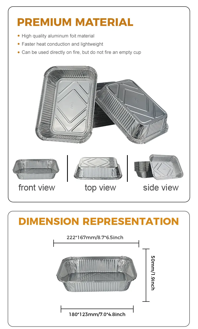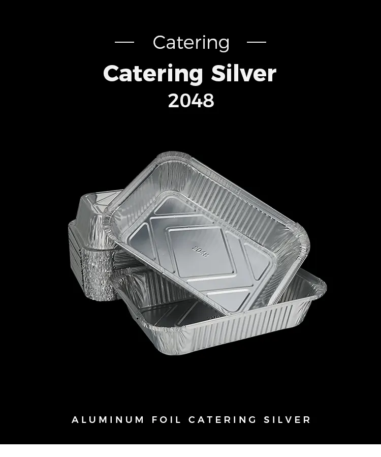 • Одноразовая коробка для обеда для выпечки барбекю, серебряные контейнеры из алюминиевой фольгиОдноразовая коробка для обеда для выпечки барбекю, серебряные контейнеры из алюминиевой фольги