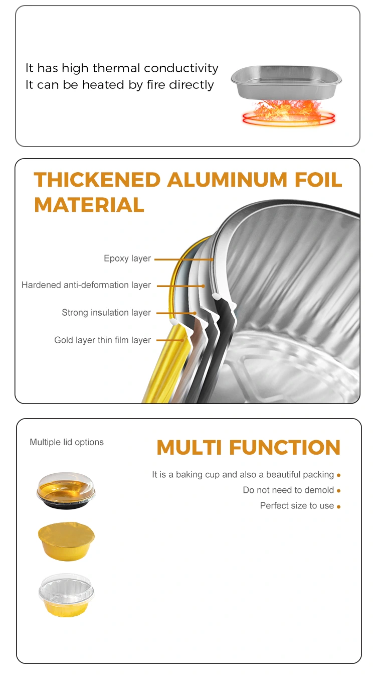 4. Противни для еды из алюминиевой фольги на вынос имеют простые и аккуратные линии, дополненные современным серебряным блеском. Это может повысить визуальную привлекательность продуктов питания и общее качество, помогая укрепить профессиональный и высококлассный имидж бренда.