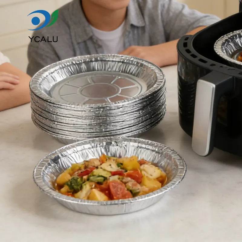 Одноразовая дисковая фритюрница с алюминиевой фольгой Yunchu Контейнер из серебряной алюминиевой фольги Пищевая алюминиевая фольга высокой чистоты не имеет примесей и запаха и соответствует национальным стандартам на материалы, контактирующие с пищевыми продуктами. Он может непосредственно контактировать с сырыми и приготовленными ингредиентами – будь то маринованный шашлык, освежающие жареные овощи или мягкие, клейкие и сладкие жареные десерты. Вероятность проникновения вредных веществ исключена. Серебристая глянцевая алюминиевая фольга обладает отличной теплопроводностью. Цельная конструкция диска подходит для большинства размеров фритюрниц. Доступный в размерах 6, 7 и 8 дюймов, он подходит для небольших порций и для всей семьи. Нет необходимости в повторных корректировках. Его можно легко поместить в корзину для жарки, что позволяет полностью использовать преимущества материала.