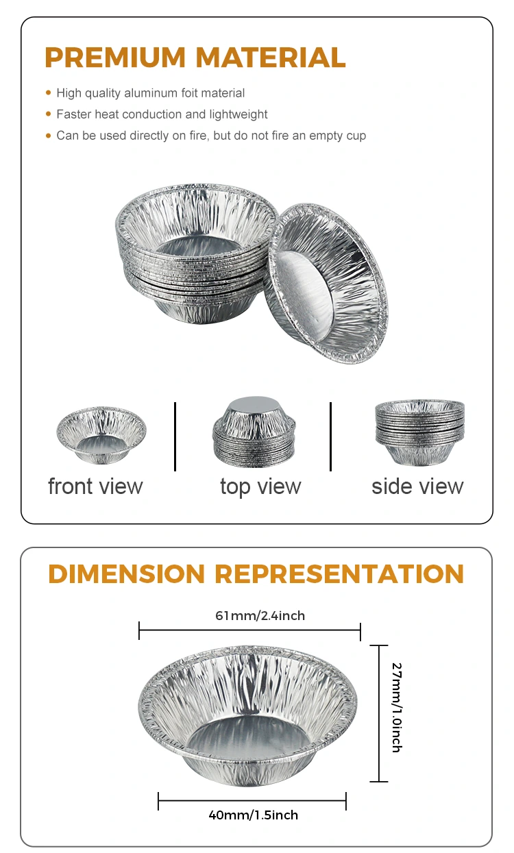 Одноразовый лоток для яичных пирогов из алюминиевой фольги Yunchu, контейнер из серебряной алюминиевой фольги изготовлен из пищевой утолщенной алюминиевой фольги и прошел множество испытаний на безопасность. Он не имеет запаха и вредных остатков, что делает прямой контакт с пищевыми продуктами более безопасным. Уникальная утолщенная конструкция обеспечивает отличную поддержку продукта и отличную устойчивость к высоким температурам. Независимо от того, запекается ли он при высоких температурах в духовке или точно нагревается во фритюрнице, он не легко деформируется и не протекает, гарантируя, что яичные пироги полностью застынут, а края будут хрустящими и не рухнут. В то же время материал алюминиевой фольги проводит тепло равномерно, позволяя более равномерно нагревать яичные пироги, избегая подгорания снаружи и сырости внутри, а также легко выпекая яичные пироги профессионального уровня, золотистые снаружи и нежные внутри.