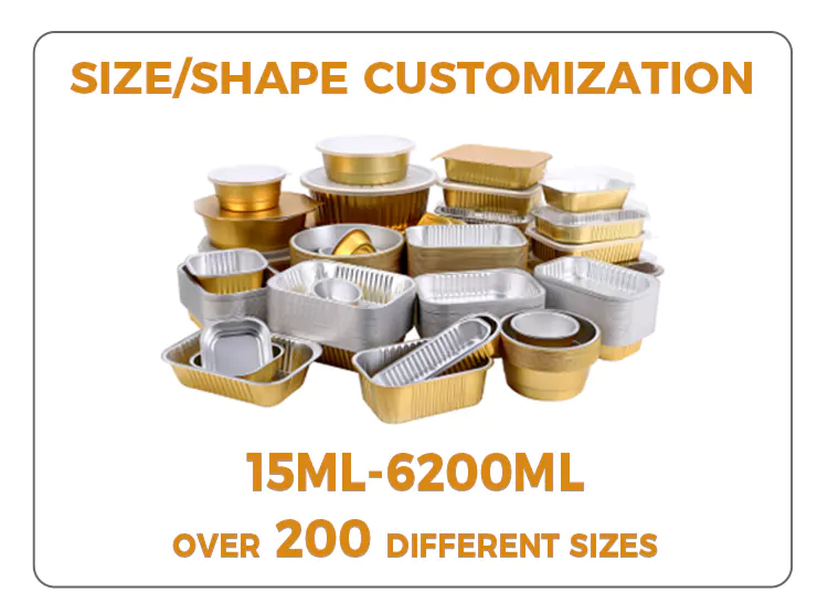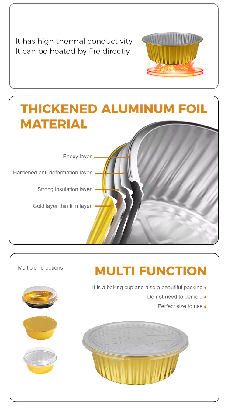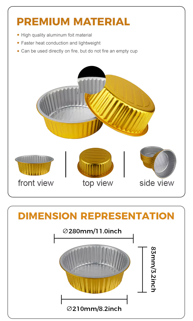 • Одноразовые круглые контейнеры из золотой алюминиевой фольги большой емкостиОдноразовые круглые контейнеры из золотой алюминиевой фольги большой емкости