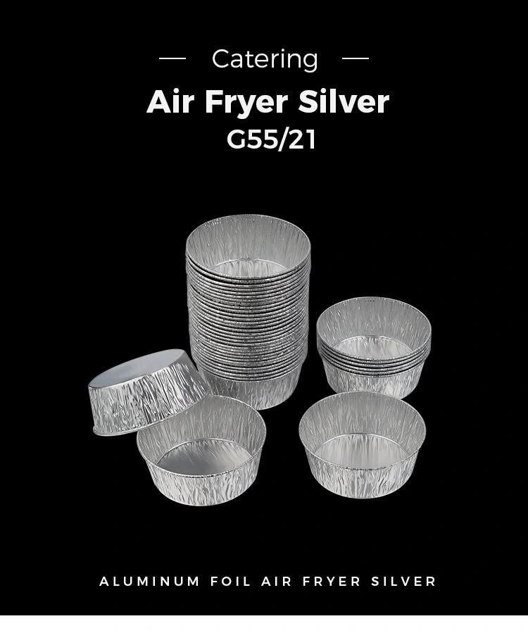 • Одноразовая серебряная круглая фритюрница, серебряные контейнеры для пищевых продуктов из алюминиевой фольгиОдноразовая серебряная круглая фритюрница, серебряные контейнеры для пищевых продуктов из алюминиевой фольги