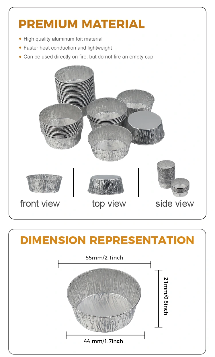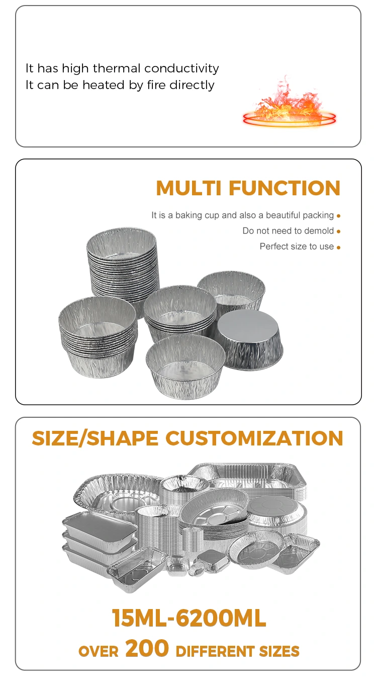 Одноразовый контейнер из серебряной алюминиевой фольги для фритюрницы с круглым погружением от поставщика алюминиевой фольги Yunchu предназначен для одноразового использования, что полностью устраняет утомительную задачу мытья посуды после еды, экономя время и энергию; материал алюминиевой фольги пригоден для вторичной переработки, экологически безопасен и не обременителен, с учетом удобства и экологических концепций. Маленький и изысканный внешний вид, штабелируемое хранилище не занимает места, легко экономя место для хранения на кухне. Независимо от того, используется ли он дома или на работе, этот одноразовый круглый контейнер из алюминиевой фольги серебристого цвета может решить проблему хранения и использования соусов благодаря высококачественным материалам и продуманному дизайну, делая каждое приготовление пищи и каждую встречу более беззаботным и комфортным.