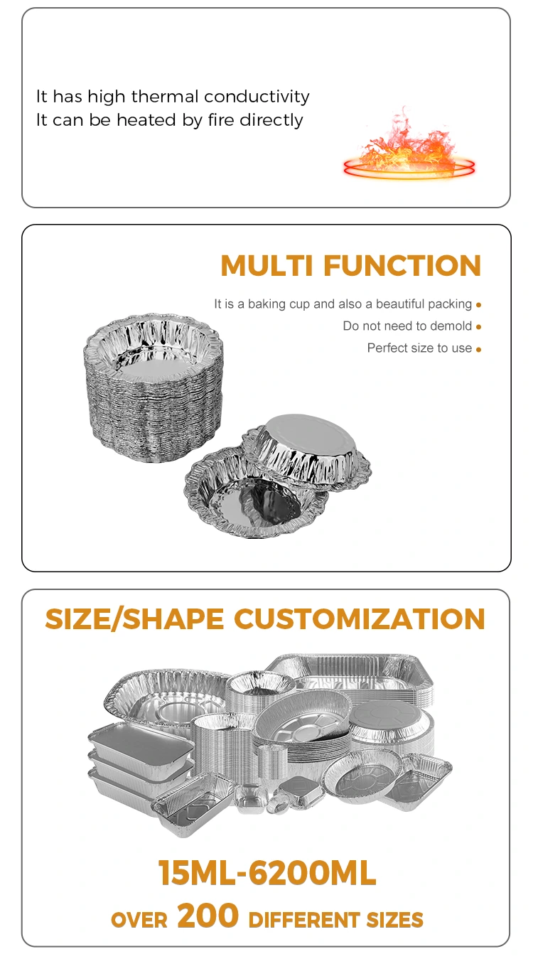 Поставщик алюминиевой фольги Yunchu Кружевной круглый торт для выпечки Контейнеры из серебряной алюминиевой фольги, очень удобные для выпечки тортов, яичных пирогов и жарки на воздухе, со множеством функций, толстые и прочные для выпечки. Что вы цените больше всего при выборе форм для выпечки? Надежен ли материал? Легко ли разобрать? Это удобно для пользователя? Этот кружевной круглый контейнер для выпечки торта из серебряной алюминиевой фольги отвечает вашим потребностям в формах для выпечки! Цельнолитой, утолщенный и прочный для выпечки, изготовлен из материала алюминиевой фольги, предназначенного для контакта с пищевыми продуктами 8011, безопасен для контакта с пищевыми продуктами, не легко деформируется и не протекает, равномерная теплопроводность, не подгорает и не переваривается, вкусен и безопасен в приготовлении, устойчив к маслу и пятнам, легко извлекается из формы, с кружевом вокруг для удобного захвата, морщинистая форма облегчает обращение, а круглое и гладкое дно позволяет быстро извлекать из формы.
