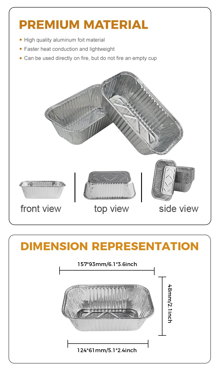 Yunchu Алюминиевая фольга поставщика поставщика прямоугольной воздушной фритюрной гриль серебряной алюминиевой фольги подходит для различных случаев, таких как воздушная фритюрница, выпечка, вынос для питания, вечеринки и места для самообслуживания. Его можно использовать для приготовления пищевых продуктов, таких как квадратный хлеб, печенье, грили и фритюрнику, а также можно использовать с различными продуктами питания. С объемом 450 мл этот контейнер способен удерживать большинство продуктов питания и поставляется с полностью прозрачной крышкой для любимой фольги, чтобы эффективно предотвратить вход в пыль и другие загрязнения. Гладкие наружные стены позволяют легко складывать и хранить, экономя пространство. Он безопасен и полезен в использовании, и он очень экологически чистый, а материал пригоден для переработки, что облегчает его переноску и повторное использование.