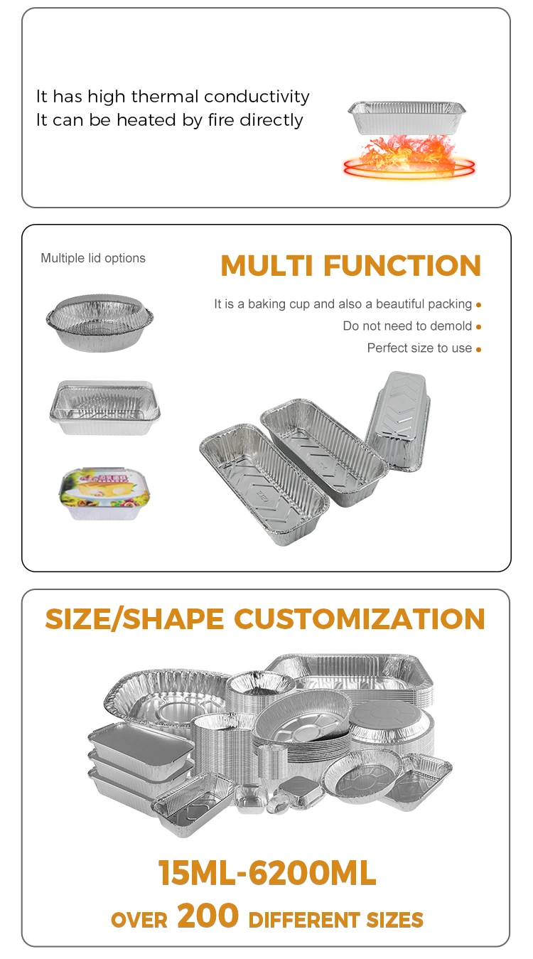 Прямоугольный поднос для хлеба с серебряной алюминиевой фольгой, предоставленные поставщиком алюминиевой фольги Yunchu, доступны в различных размерах и спецификациях, подходящих для всех видов оборудования для горшка. Будь то большой гриль или маленькая домашняя духовка, он может с легкостью справиться с ним. Он бывает разных размеров и может удовлетворить потребности различных открытых барбекю для огня, будь то барбекю на открытом воздухе или временное использование в качестве блюда, проблем не будет.