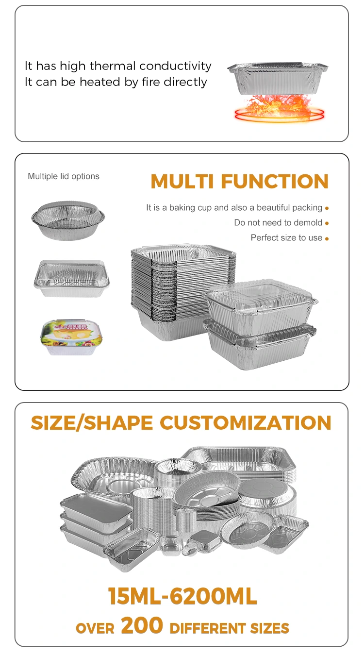 Прямоугольный гратин-это упакованная серебряная алюминиевая фольга, предоставленные поставщиком алюминиевой фольги Yunchu, изготовлен из высококачественного серебряного материала 8011-0. Этот контейнер подходит для различных методов приготовления пищи, таких как авиационные фритюрники, барбекю, выпечка и готовые блюда, и может быстро нагреть пищу для повседневной жизни. Он очень гибкий, материал прочный и долговечный, и его нелегко деформировать или сломать. Благодаря его утолщенной конструкции этот контейнер с алюминиевой фольгой может выдерживать открытое нагрев пламени, обеспечивая безопасность потребителей и обладает хорошей температурой и устойчивостью к влаге, что делает его подходящим для безопасного транспорта.