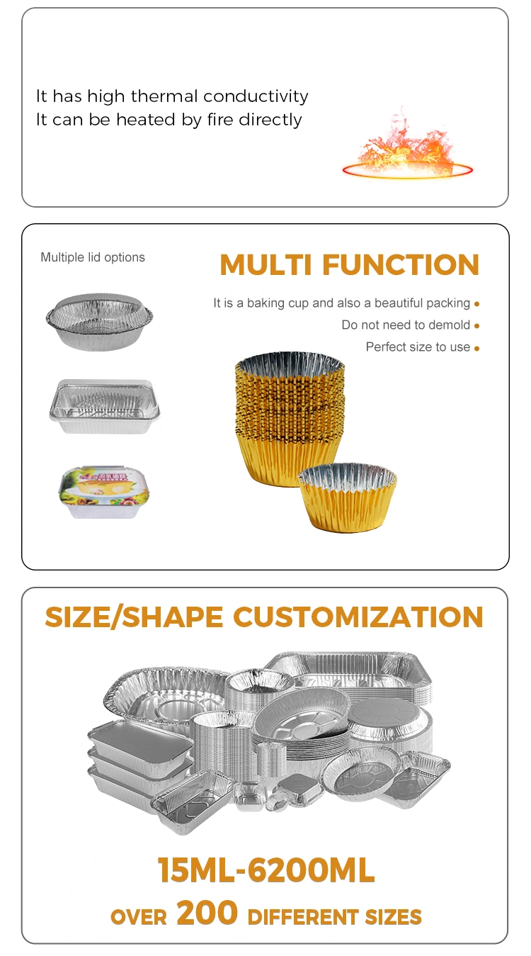 Модель D35-16 Yunchu Алюминиевая фольга Поставщик Foil Круглый маленький пакет для выпечки серебряной алюминиевой фольги для пищевого контейнер особенно подходит для небольшой упаковки и выпечки. Его уникальный дизайн, включая форму в форме сердца, обслуживает широкий спектр использования, что делает его универсальным для различных небольших продуктов питания. Кроме того, поверхность контейнера из алюминиевой фольги серебряной алюминиевой фольги для круглой малой упаковочной выпечки разработана с помощью плиссированной конструкции, которая не только предотвращает скольжение пищевых продуктов, таких как небольшие закуски и конфеты, но также повышает сопротивление скольжению. Мы предлагаем услуги настройки разных цветов для удовлетворения индивидуальных потребностей.