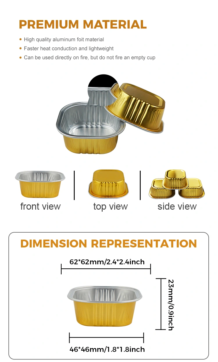 Квадратные формы для выпечки десертов от производителя алюминиевой фольги Yunchu Контейнеры из алюминиевой фольги Smoothwall можно использовать во фритюрницах, выпечке, соусах и т. д. Эти формы для выпечки имеют специальную конструкцию с усиленными ребрами, а их короткая конструкция корпуса чашки делает их хорошими фрикционными свойствами, их нелегко скользить, легко брать и они не повредят рукам и рту. Они подходят для приготовления различных десертов, включая кексы, заварной крем, песочное печенье, пироги, булочки с корицей, чизкейки, заварные кремы и пудинги. Эта ребристая структура обеспечивает дополнительную поддержку и особенно подходит для использования в коммерческих пекарнях или крупных супермаркетах.