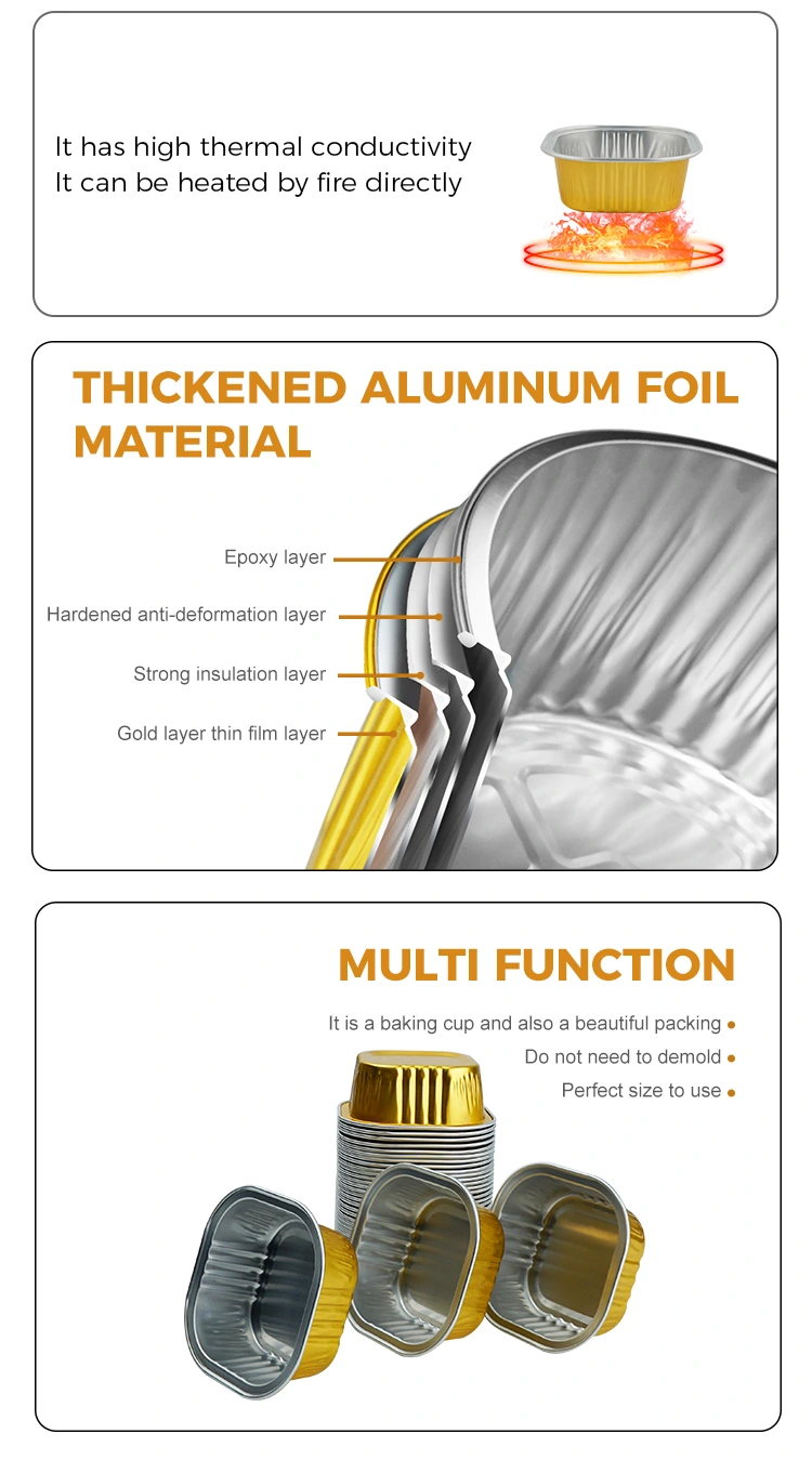 Квадратные формы для выпечки десертов созданы одновременно красивыми и функциональными. Контейнер из алюминиевой фольги Smoothwall предназначен для выдерживания высоких температур без выцветания. Он изготовлен из материала 8011-0 и имеет максимальную термостойкость до 660°C. Обычное кухонное оборудование также может нагреваться до 200°C, гарантируя, что еда не подгорит и не растрескается. Поскольку он изготовлен из утолщенного материала, его можно использовать несколько раз. Все это было обработано с помощью четырех слоев технологии. После приготовления его можно взять в руки и съесть, не беспокоясь о деформации. Кроме того, его очень удобно чистить, и вы можете напрямую контактировать с ингредиентами для поддержания гигиены.